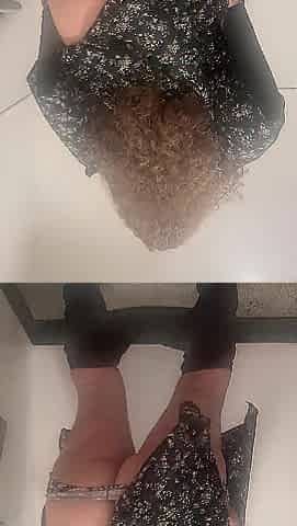 I try on garments in fitting room with open curtain. People are passing and watching on me.