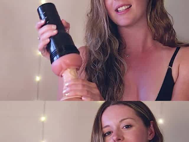 Victoria uses a fleshlight to drive her boy mad for pussy