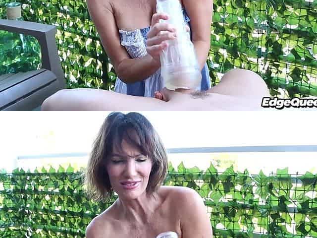 Emily Jerks Strangers Cock with Elsa Jean Fleshlight