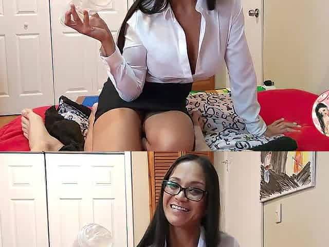 Petite MILF Aaliyah Love plays a JOI game with a fleshlight and a big dong