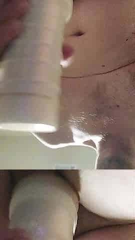 Super soaked sloppy seconds of my cunt/tit fleshlight toy dumped a load in it earlier
