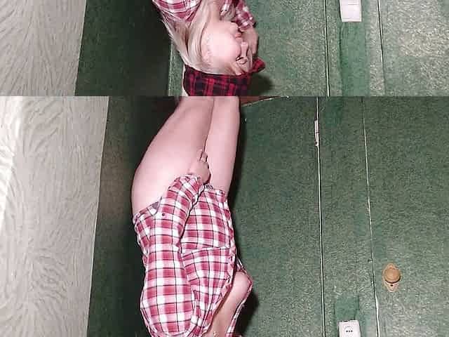 Blonde teen toys her pussy on the floor at the casting