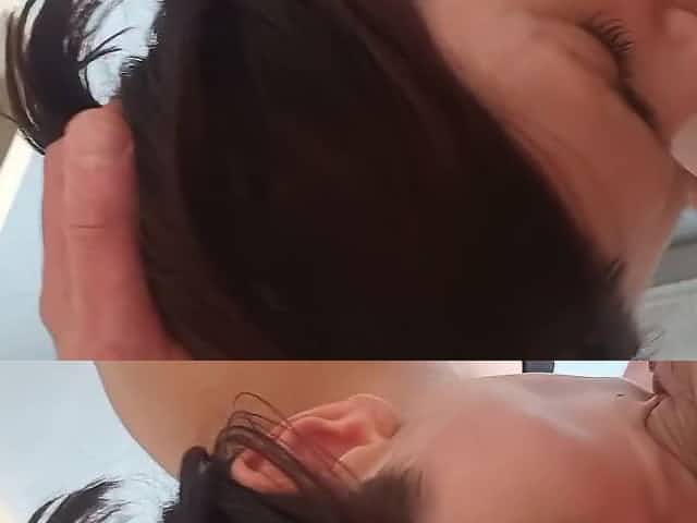 A Fiesty Brunette Takes A Older Mans Cock In Her Mouth On The Floor