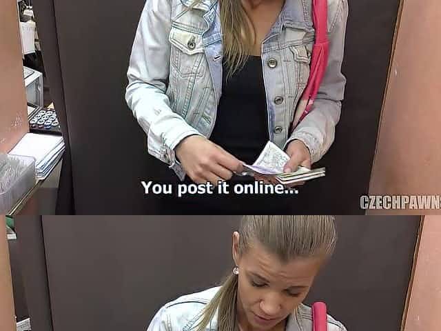 Blonde honey in heels blows a fat cock and fucks it on floor
