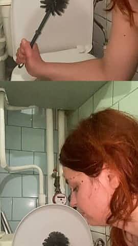 dirty toilet licking, toilet brush, spit from the floor