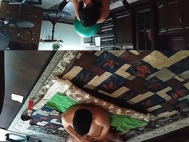 Blowjob On A Big Cock And An Intense Cowgirl Fucking On The Floor - View From Behind - Amateur Coupl