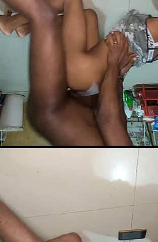 Skinny, Arican hottie is bouncing up and down during the time that riding a hard, white weenie on the floor