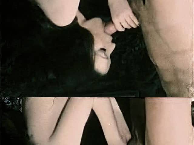 Oversexed retro brunette gives her head and gets fucked on the floor