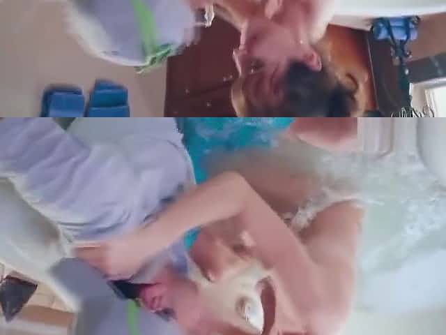 naked fat lady washes the floor and fuck her ass with a mop