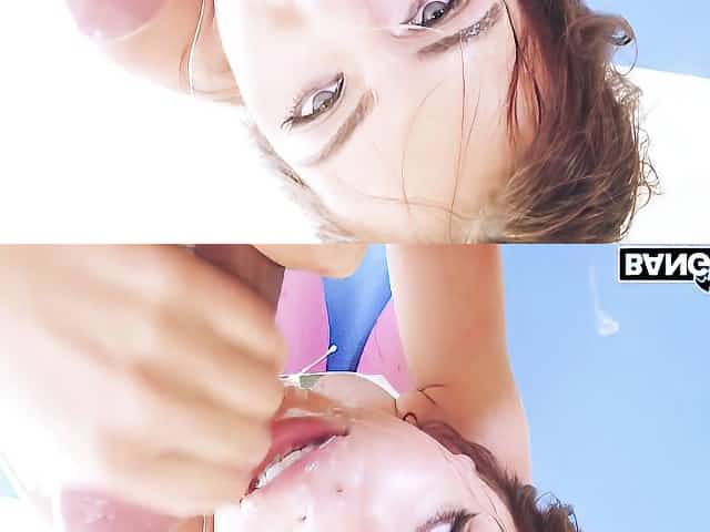 Awesome teen with small tits Emma Hix gives a professional blowjob