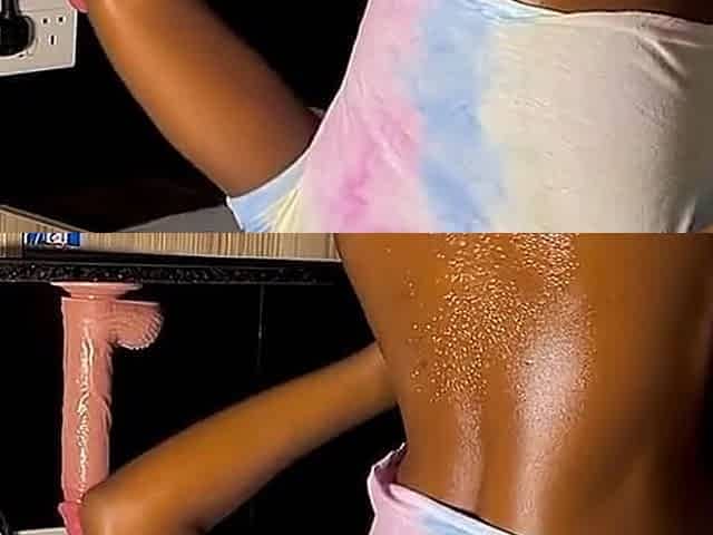 Horny Ebony Lesbians Hard Fuck Big Dildo On The Kitchen Floor