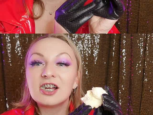 Blonde Arya Grander indulges in an ASMR mukbang while showing off her braces and devouring ice cream
