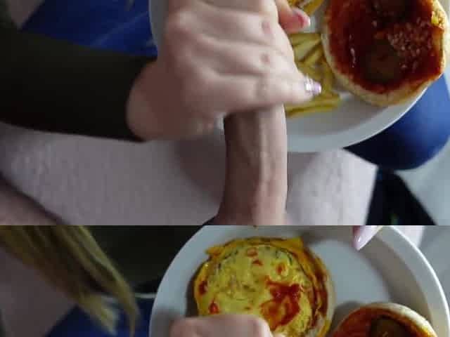Old lady CFNM drain balls of her stepson huge load food fetish