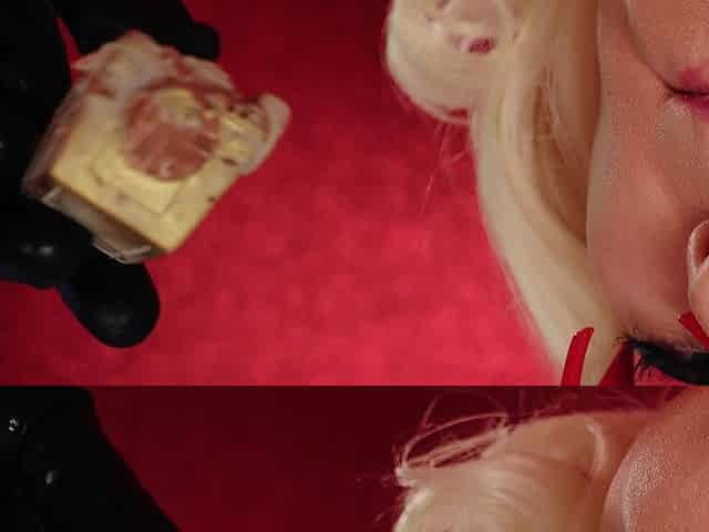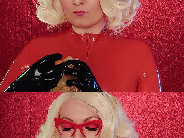 Food fetish: eating video latex blonde girl