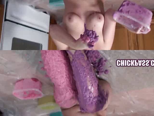 Wild Asian nympho plays with food then gets her juicy pink pussy drilled