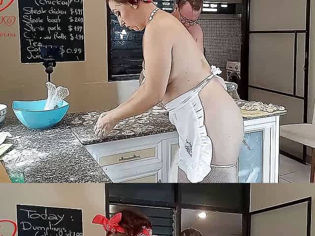 Full video. Nudist housekeeper regina noir cooking at the kitchen. Naked maid makes dumplings. Naked cooks.