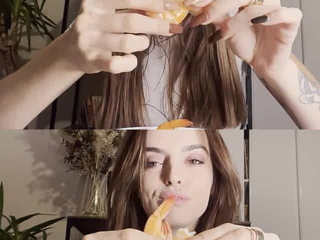 Cheerful maid without panties eats a lot of bananas in the dining room. ASMR 3