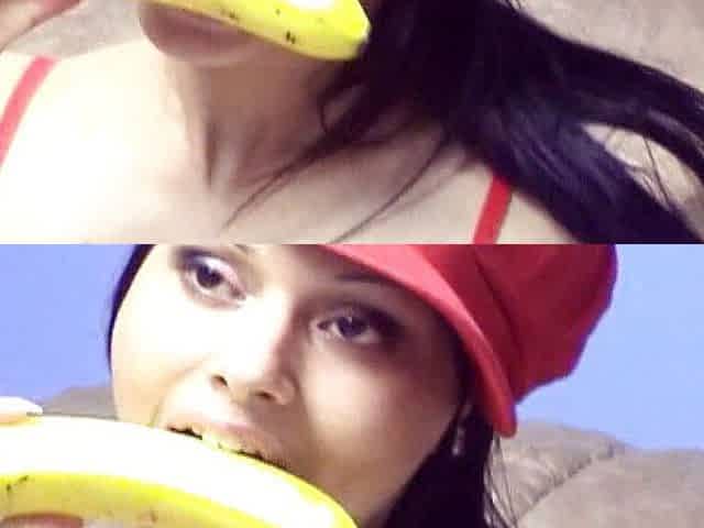 Sexy red fishnet girl with banana