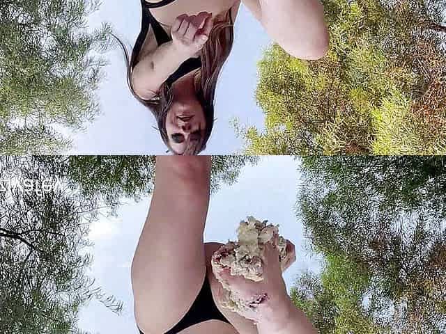 Fat girl sadee eating and playing with food rubbing on her clit then eats it
