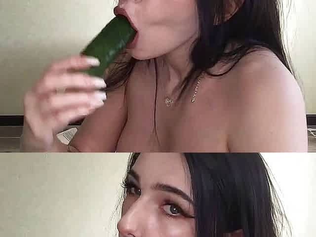 Young Latina girl who likes to suck cocks tries to suck a cucumber and gags on it when she sees that her mouth is not yet read