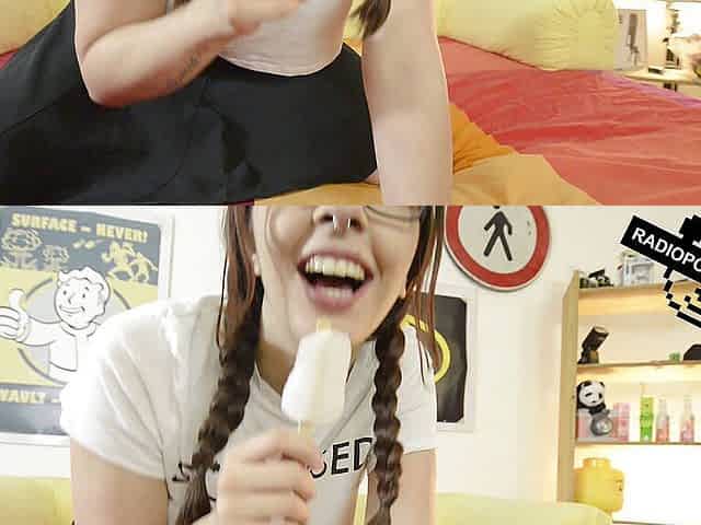 Fuck sweet pussy! Girl masturbates with lollipop, and gets a juicy healthy dick in her pussy