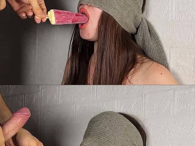 Ice Cream Game. Massive Cumshot on Stepsis' Face During the Game of Taste