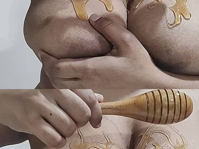 Indian girl the cat woman playing with her honey filled boobs