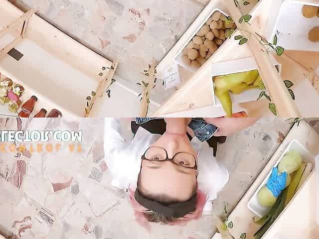 Crushing fruits below her hot exposed feet, POV (food crushing, POV trample, undressed feet, POV feet)