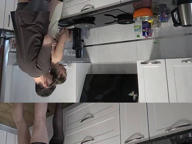 Gorgeous blonde playing alone with her puss in the kitchen - Tyna