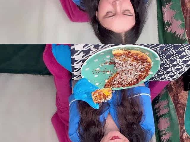 What a nasty cutie - Eating snacks with her feet and masturbating in front of her Stepdad