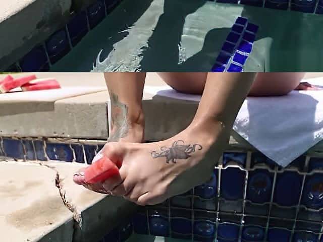 allysa kayson poolside footjob barefoot worship eating food from feet