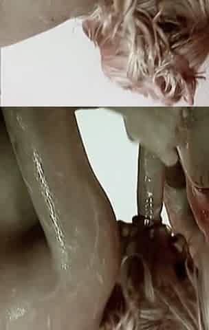 Funny Food Scene 2: Couple of Blonde Waitresses Fucking in Lingerie in a Foursome Covered in Cream