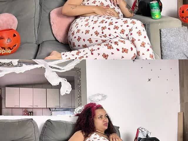 Gassy BBW Halloween Movie Night with Farting and Burping