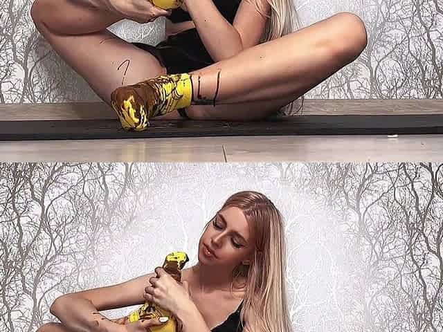 I fucked while smoking and ended up cumming in a food fetish eating banana