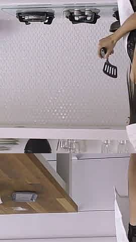 Jiggly step-sisters Marissa Mei, Alexa Nova, and Chloe Temple getting wild in the kitchen, jizzing on food