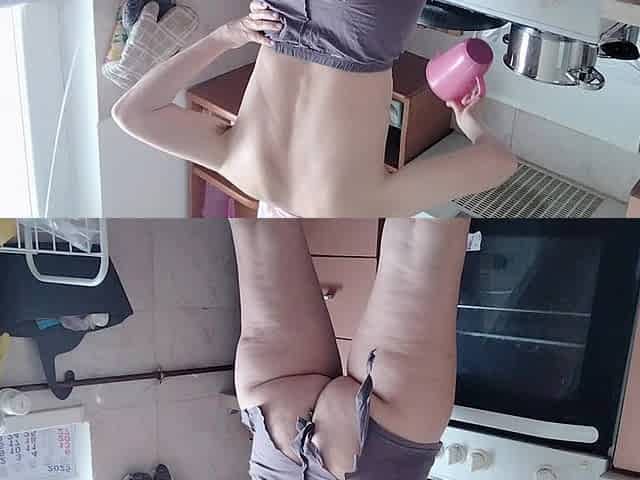 Sexy Naked Latina in the Kitchen with Hairy MILF Hair, Big Ass, Big Tits. Sexy Nude Woman Prepares Food in the Kitchen.
