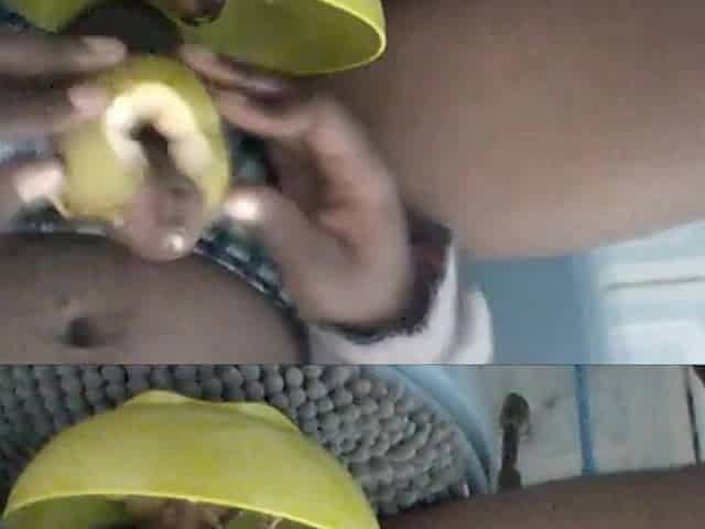 BBC Stuffing My Fat Pink Pussy with Apple Licking My Clit Pushing It Out Cumming Hard