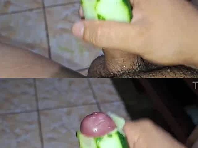 Wanking with a cucumber