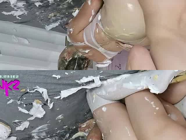 Cindy Behr gets covered in sticky pudding while getting fucked well by her man Jamie Barry