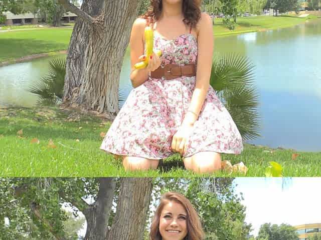 Stunning Kinsley with natural tits pleasuring herself with a banana