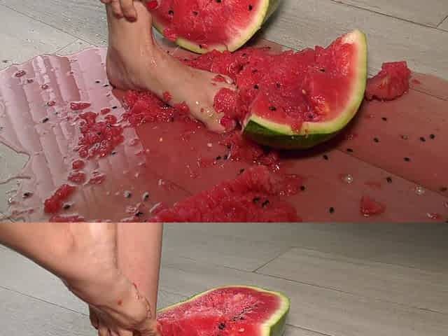 Busty MILF Presents Her Feet and Plays with a Watermelon