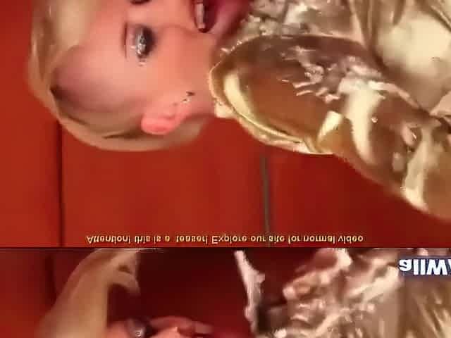 "Dirty talk and food play lead this naughty blonde to a massive anal spectacle"