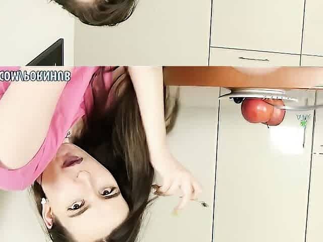 Brunette Teen Laci Uses Food