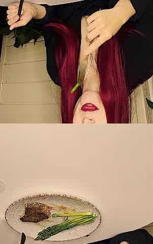 Food fetish video of Maddy Nelson with natural tits & shaved cunt