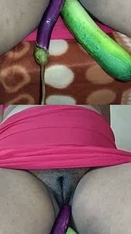 Hot Saira Bhabhi Masturbated with Brinjal and Cucumber in Her Chute.