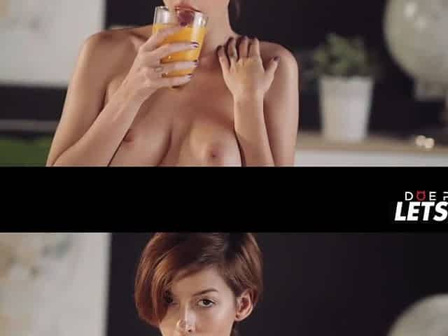 Nice And Juicy - busty Uma Jolie pussy licking on kitchen counter top
