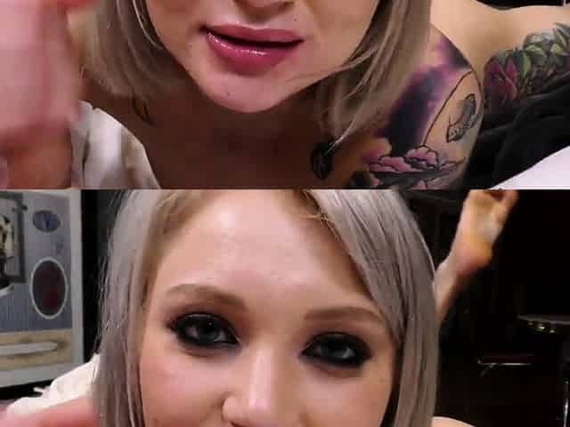Tattooed food fetish POV babe sucks and rides BFs cock