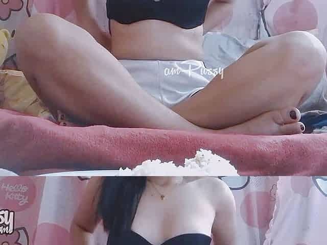 Asian amateur girl is eating food naked