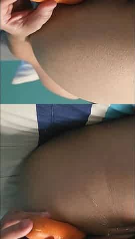 Pussy and Asshole Dripping with Juices From Using Carrot to Anal Masturbate