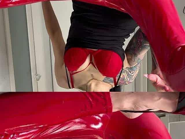 Long Red Nails and Red Pvc Pants, Hight Heels and Handjobs